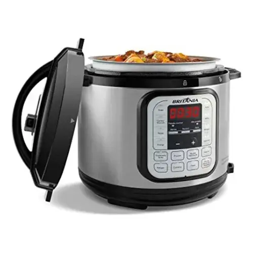 A Panela de Pressão Digital Supreme Gold BPP02G Britânia é ideal para receitas mais rápidas e práticas. Equipada com 11 programas de cozimento pré-definidos, permite colocar o alimento, selecionar a opção desejada e aguardar o preparo. Oferece a possibilidade de programar o cozimento automático com até 24 horas de antecedência, facilitando o preparo do feijão e outras refeições para toda a família.