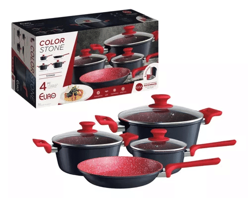 Este conjunto de panelas é perfeito para qualquer cozinha. Com 4 peças de alumínio com antiaderente e 5mm de espessura, elas são resistentes e fáceis de limpar. Além disso, possuem tampa de vidro temperado com saída de vapor e cabo com pintura siliconada soft Touch que não esquenta e tem toque macio. São ideais para cozinhar em fogões a gás, halogênio, cerâmico ou elétrico.